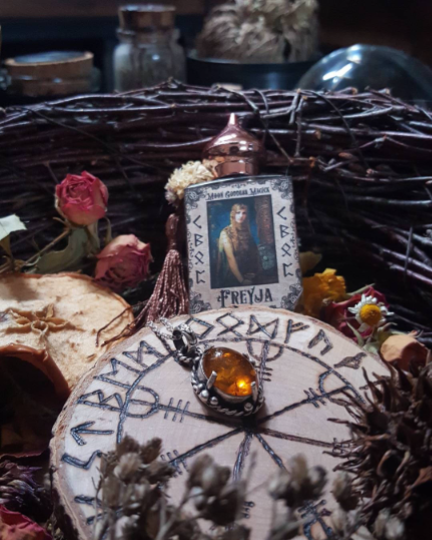 This Medieval inspiration pendant is made from sterling silver and ornamented with a luminous Amber gem.