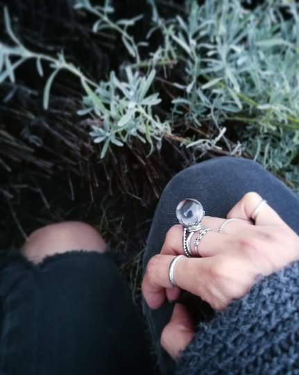 Bague symbolisant le pouvoir psychique, le savoir ancien et la pratique de la divination en argent sterling, ornée d'une boule de cristal en Quartz.