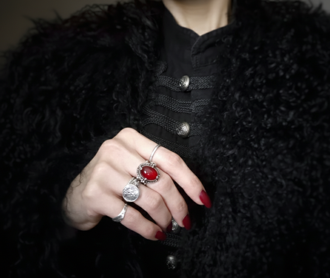 Bague d'inspiration Médiévale en argent sterling ornée d'un intense Onyx rouge.
